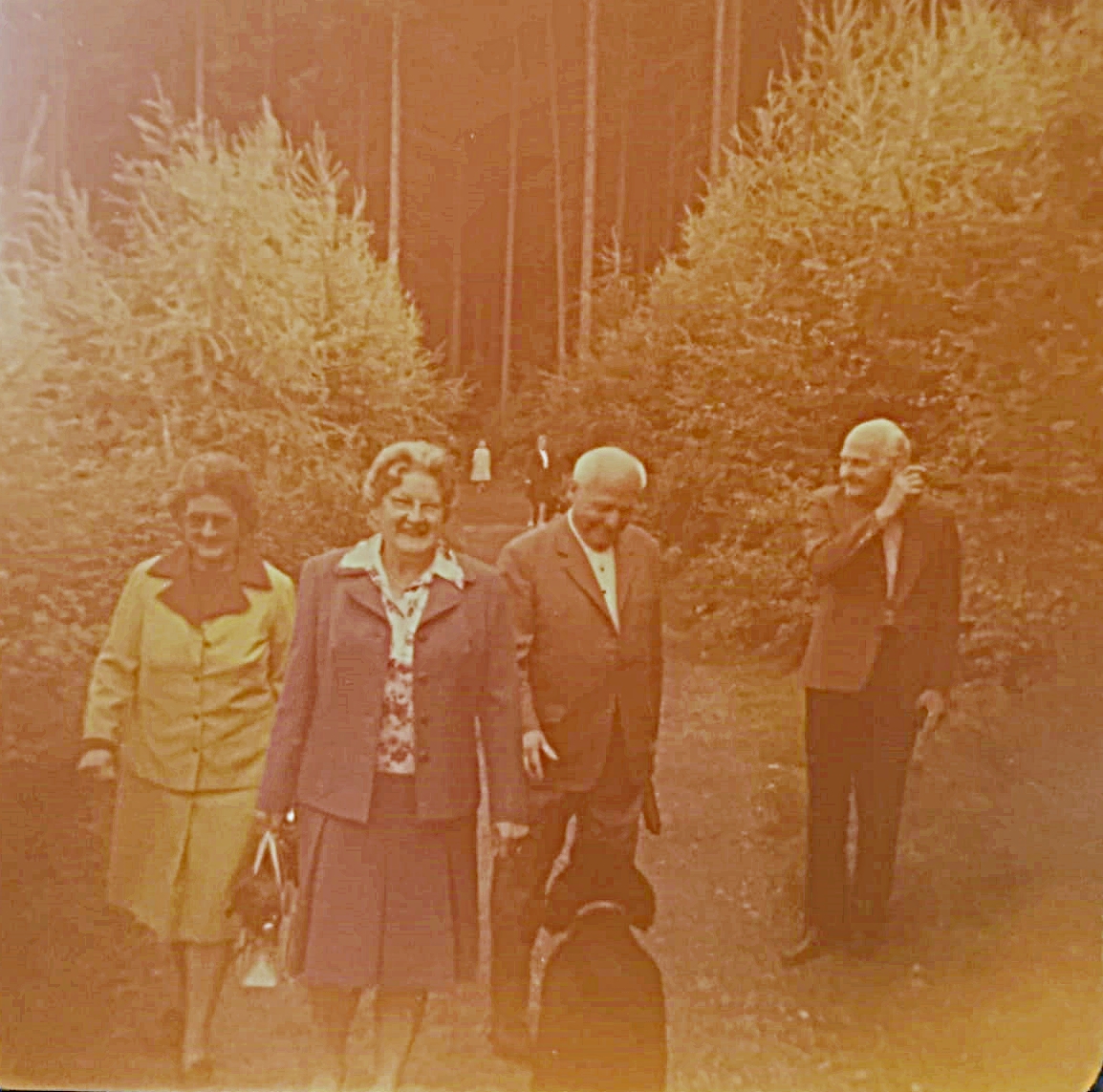 Nesta foto aparecem Frederico Kruse (à direita) e, à esquerda, Elfriede Kruse. Ao centro, irmão Friedrich e cunhada, num passeio pela Floresta Negra, na Alemanha.