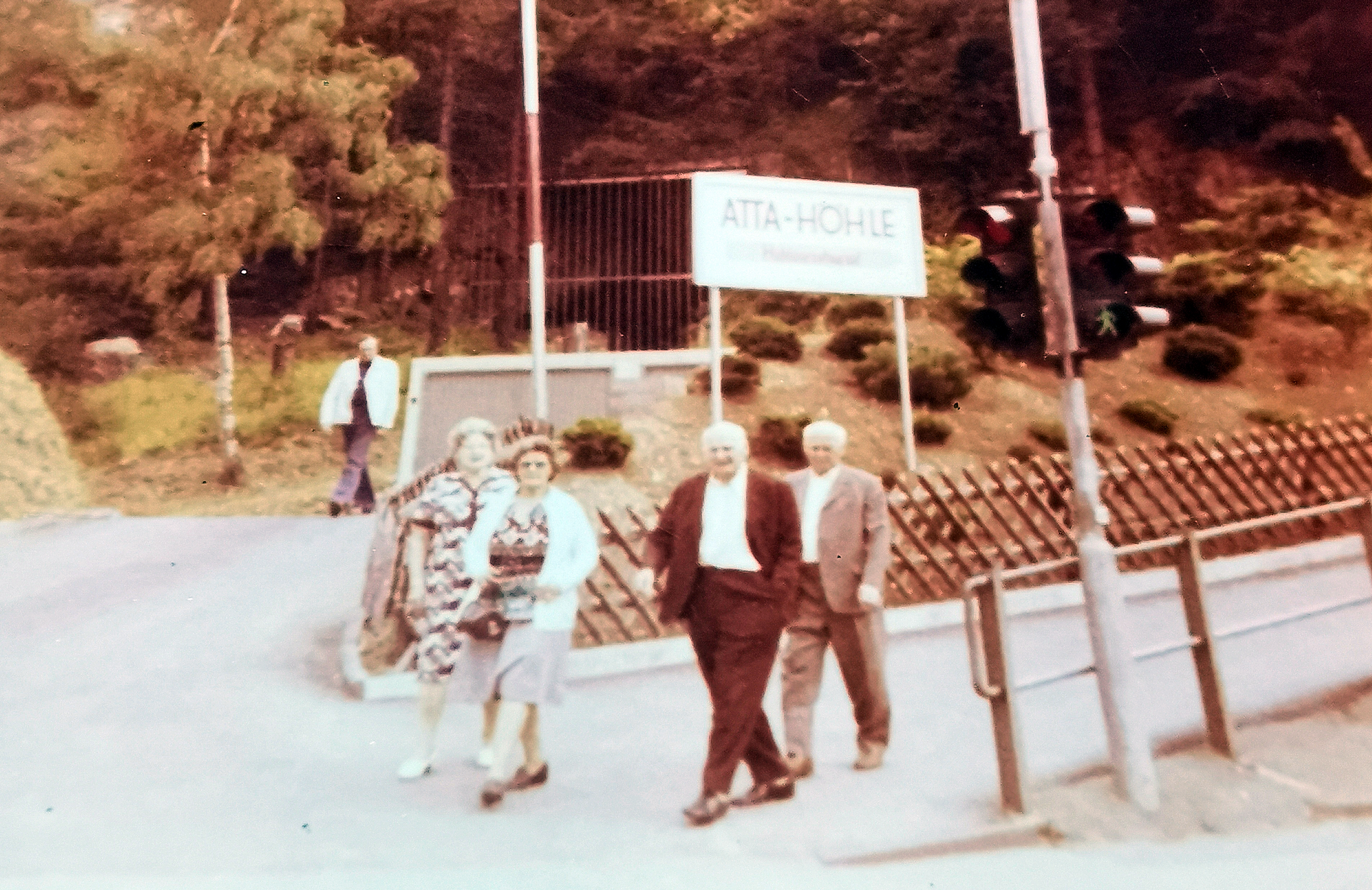 Esta outra foto é de setembro de 1975 e foi revelada no serviço Porst Königsbild. Na foto estão Frederico e Elfriede Kruse em primeiro plano. Atrás estão o irmão e a cunhada. No letreiro, é possível ver que estiveram visitando Atta-Hölle, uma caverna localizada próximo de Plettenberg, local de nascimento de Karl Friedrich. No passeio, visitaram parentes e conheceram importantes cidades da Alemanha. Ainda durante a estada na Alemanha, Frederico começou a sentir dores nas costas. Esta situação persistiu e o incomodou bastante.